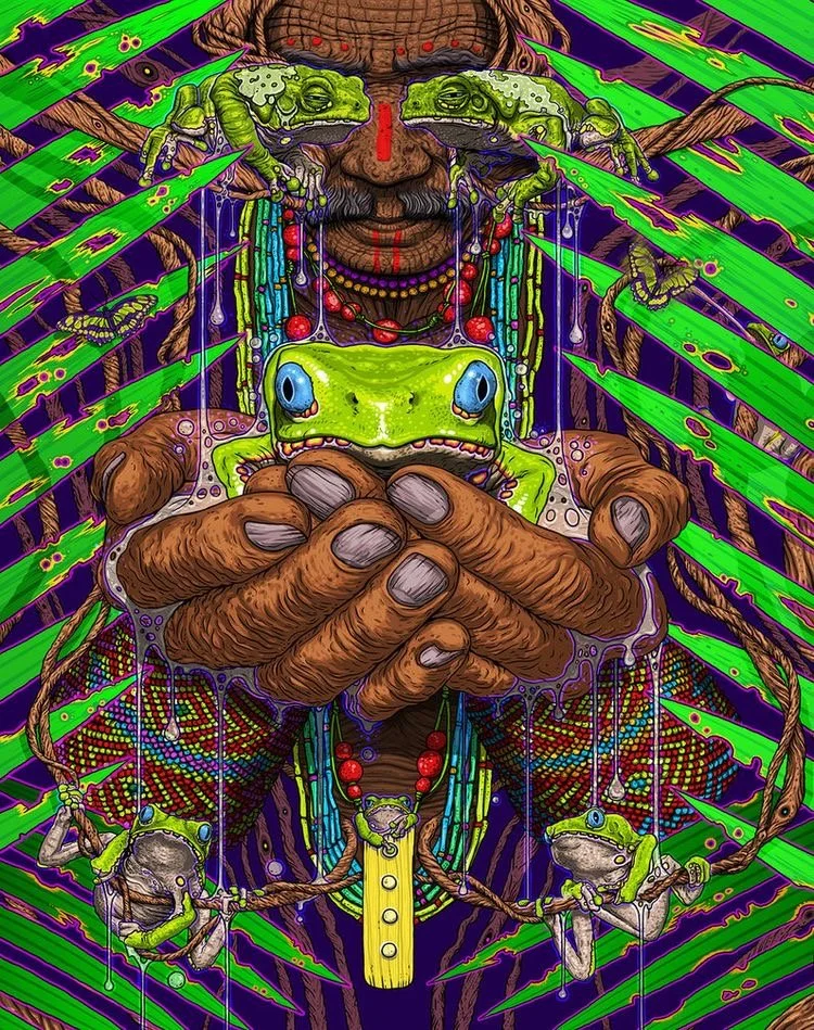 Im Laufe der Jahre wurden der Schamane und sein Heilwissen auch in anderen Gemeinden und Dörfern bekannt. Es wird erzählt, dass der Schamane, als er sehr alt war und sich dem Ende seines Lebens näherte, sagte: "Ich werde helfen, Krankheiten zu heilen", und übertrug dann seine schamanische Kraft und sein Heilwissen auf den Frosch, damit er auch künftigen Generationen als Heiler dienen kann. Seitdem ist der Frosch nach dem Schamanen benannt. Und so wirkt der Geist von Pajé Kampu bis heute in der Heilarbeit mit dem Sekret des Kambofrosches weiter.