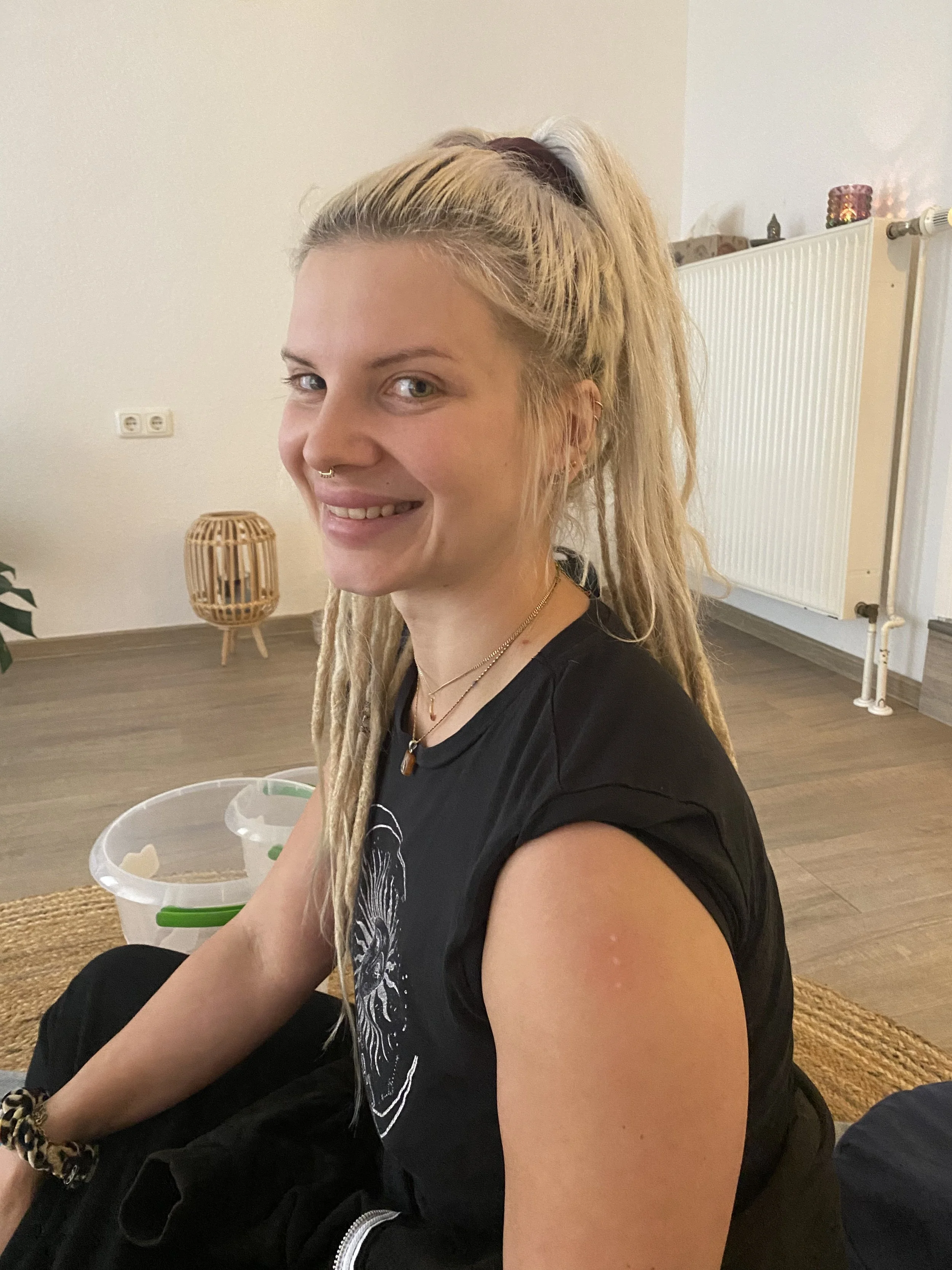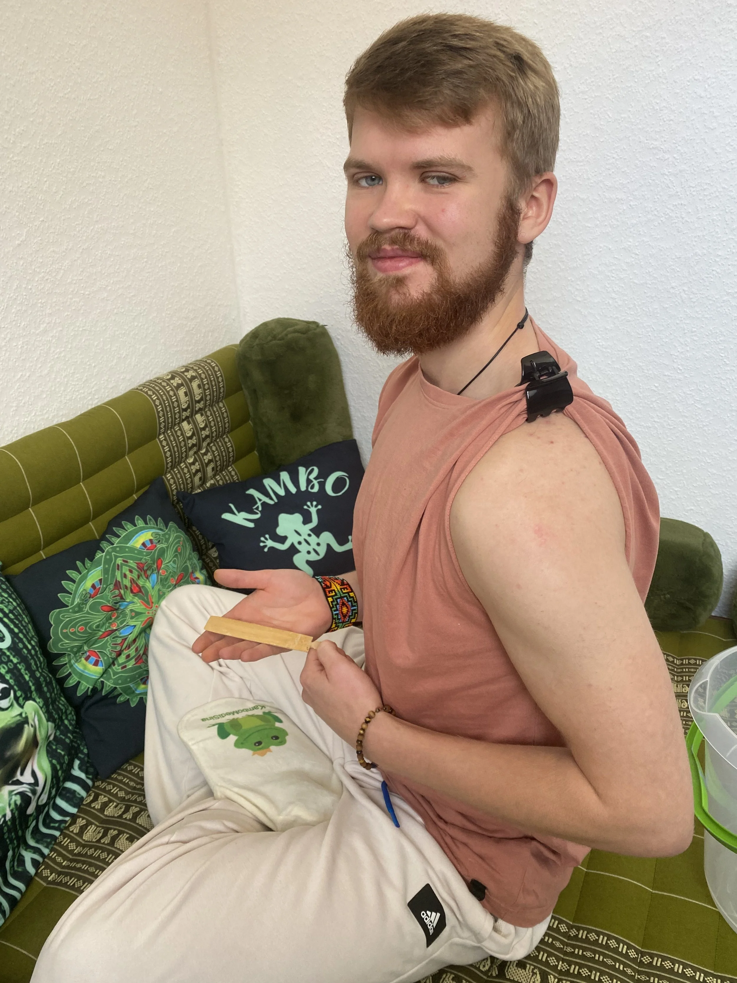 "Es war insgesamt eine sehr aufregende, spannende Erfahrung, und ich bin froh, dass ich es gemacht habe. Nicht zuletzt, weil ich mich bei Ihnen sehr sicher und wohl gefühlt habe. Irgendwie wusstest du, was du sagen und tun musst, damit ich mich gut fühle. Im Allgemeinen war es auch viel weniger anstrengend, als ich vorher erwartet oder von anderen gelesen hatte. Im Moment fühle ich mich super stolz, aber auch irgendwie reiner und zuversichtlicher, was meine innere Unruhe angeht. Kambo hat mir das Vertrauen gegeben, dass mein Körper einiges aushalten kann. Ich kann mir sehr gut vorstellen, das zu wiederholen - vor allem jetzt, wo ich weiß, dass nichts Schlimmes passiert, und ich mit mehr Gelassenheit an die Sache herangehen kann. Ich danke dir wirklich sehr, dass du mir den Mut gegeben hast, dies durch dich zu tun 💕"- Vanessa
