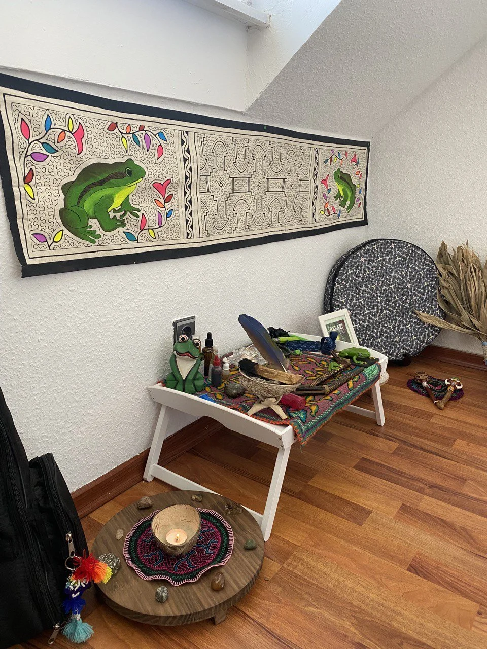 Mein Zeremonieraum bietet dir eine friedliche, einladende Umgebung in meinem Zuhause, damit deine Heilung und persönliche Transformation unterstützt wird. Ich biete eine sichere und vertraute Atmosphäre, in der du dich entspannt auf deine Reise mit Kambô einlassen kannst. Ganz egal ob du körperliche Reinigung, emotionale Erleichterung oder spirituelle Einsichten suchst, dieser heilige Raum bietet dir eine ruhige und nährende Umgebung, damit du dich wieder mit dir selbst verbinden und in deine Kraft kommen kannst.