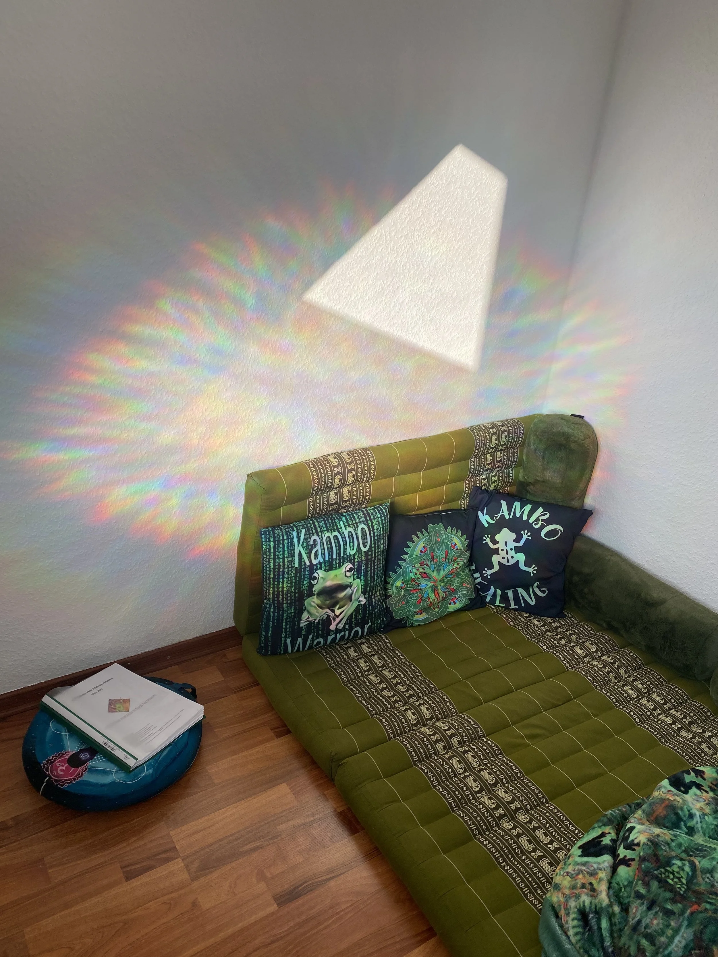Als jemand, der selbst in einigen spirituellen Kreisen und Zeremonien gesessen hat, ist es sehr in meinem Interesse, eine gemütliche und sichere Umgebung für meine Klienten zu schaffen, in der Sie in ihre eigene Heilung eintauchen können und sich gleichzeitig ein bisschen wie zu Hause fühlen können. Bevor ich 2024 meinen eigenen Raum in Lehrte erschaffen habe, hielt ich 2023 Zeremonien in einem Yogastudio im Herzen von Hannover Linden ab, wo ich auch inmitten des lebhaften Großstadt Dschungels eine friedliche, entspannende Umgebung schaffen konnte und viele Klienten und kleine Gruppen auf ihrer Reise mit Kambô, Rapé & Sananga begleiten durfte.