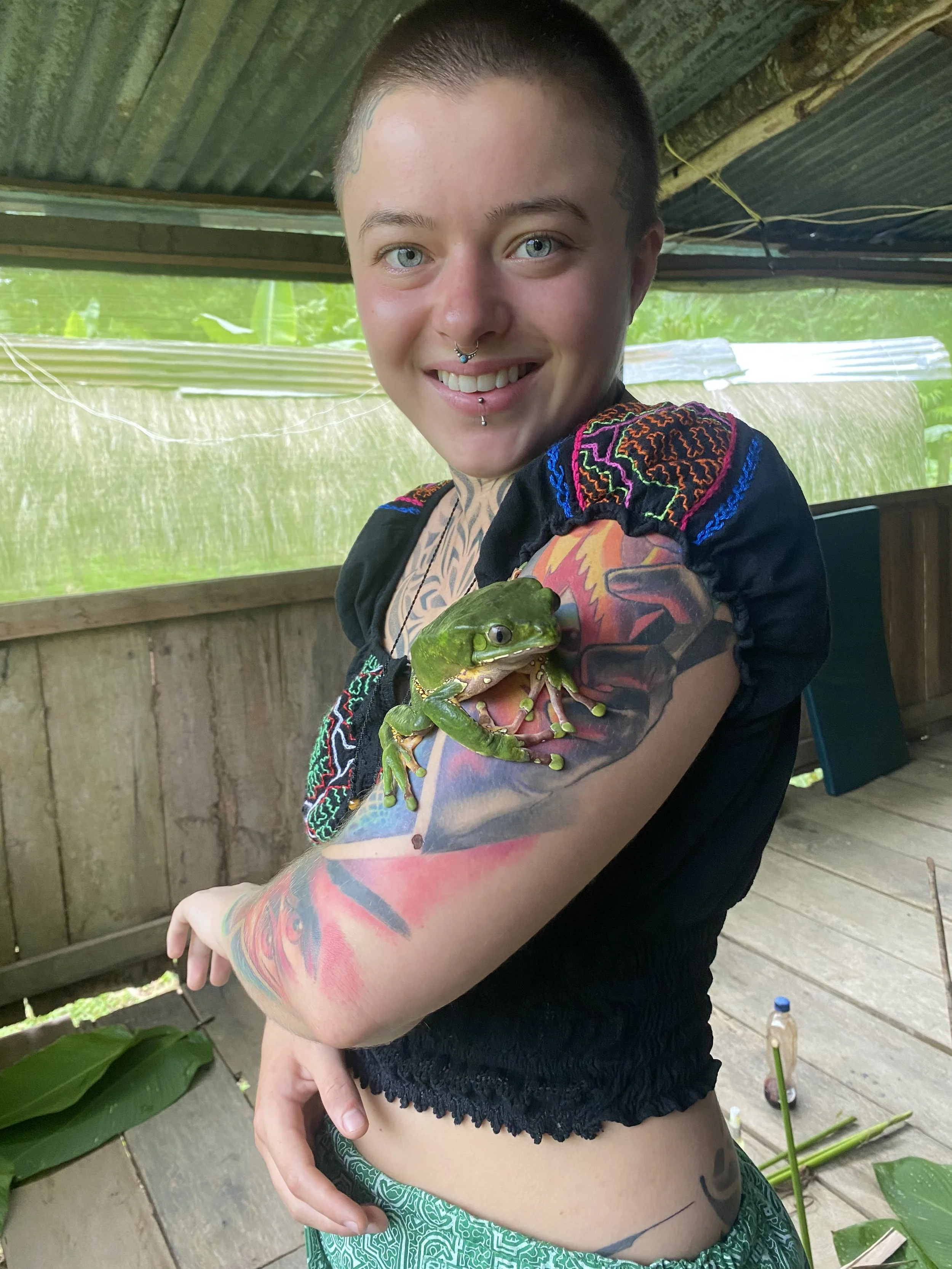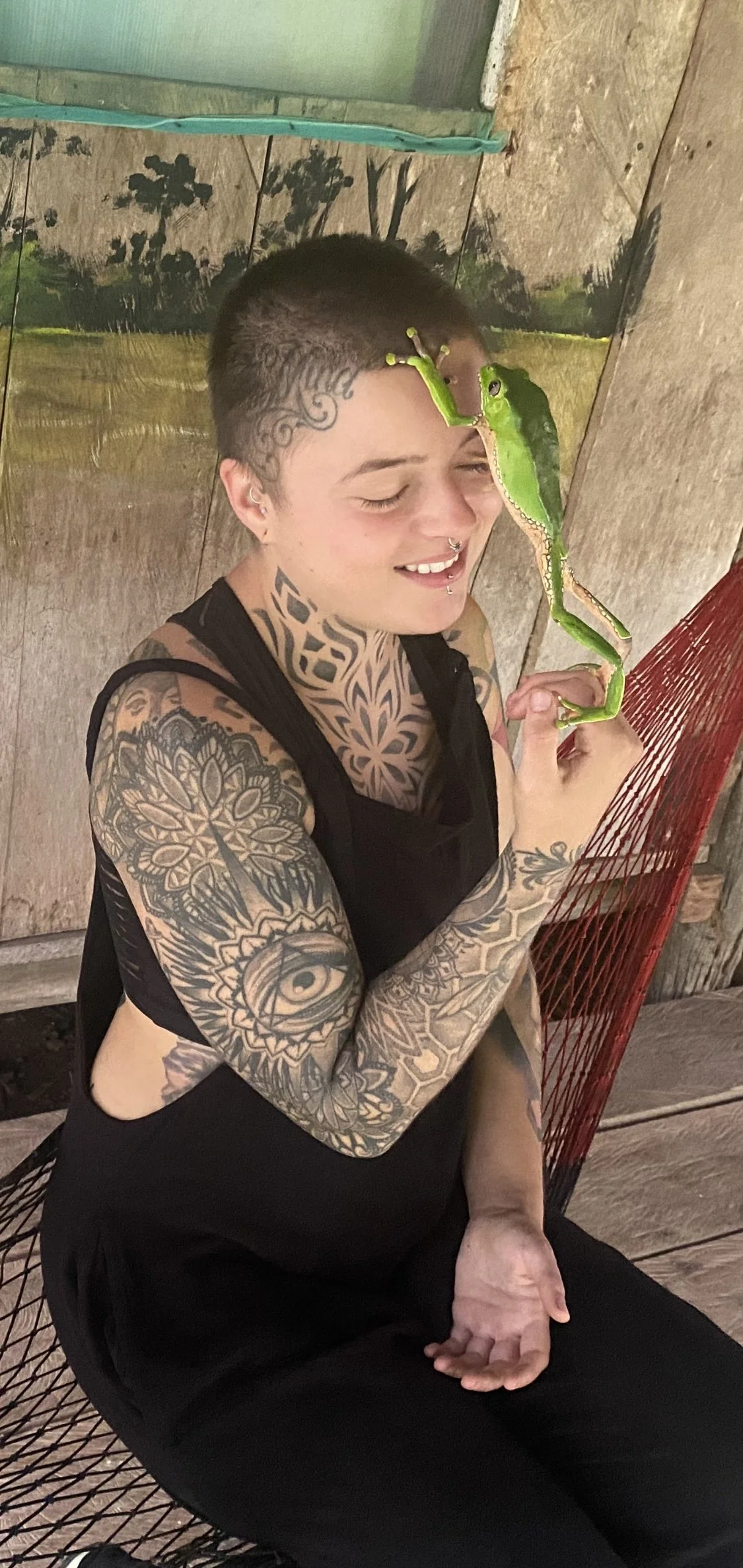 Ich war nach Costa Rica gezogen, weil die ganze Pandemie-Situation zu Hause in Hannover, Deutschland so erdrückend und deprimierend war, dass ich ausbrechen musste. Als ich in Costa Rica lebte, besuchte mich meine Freundin Mia, die ich damals im Dschungel von Tarapoto kennengelernt hatte und erzählte mir von einem Medizin Retreat in den Bergen von Monte Verde, das wir schließlich gemeinsam besuchten. Dort verliebte ich mich in den Sohn des Schamanen, der mit Kambô arbeitete. In der Zeit unserer Beziehung saß ich einige Male mit Kambô während mehrerer Retreats und bekam so die Möglichkeit, meine Verbindung mit dem Frosch sowie mit Ayahuasca zu vertiefen. In einer Zeremonie mit der Mutter erschien das Gesicht des Kambô-Frosches vor meinem inneren Auge und lud mich ein, sein Verbündeter zu werden und mit seiner Medizin zu dienen. Doch als mein beschränktes Bewusstsein nach der Zeremonie wieder einsetzte, fühlte sich ein großer Teil von mir nicht würdig genug dieser heiligen Medizin zu dienen und so lies ich mir alle möglichen Ausreden einfallen dies zu umgehen - ich redetete mir z.B. ein, dass ich diese Vision wahrscheinlich nur wegen der Verbindung zu meinem Freund hatte und nicht, weil sie für mich selbst bestimmt war. Ich fühlte mich nicht bereit Kambô zu dienen und um ehrlich zu sein, wollte ich es auch nicht - denn es schien mir wie eine riesige Verantwortung, die ich zu diesem Zeitpunkt einfach nicht tragen wollte. Ich habe mir viel zu viele Gedanken darüber gemacht, anstatt die klare Botschaft anzunehmen und meiner Berufung vertrauensvoll zu folgen. Aber wie bei jedem "Calling" hört es nicht auf an deiner Tür zu klopfen und du kannst deiner Bestimmung nur für eine gewisse Zeit entfliehen, denn sie wird dir immer weiter folgen und dich stets weiter konfrontieren bis du keine andere Wahl mehr hast, als dich hinzugeben und sie vollständig anzunehmen.